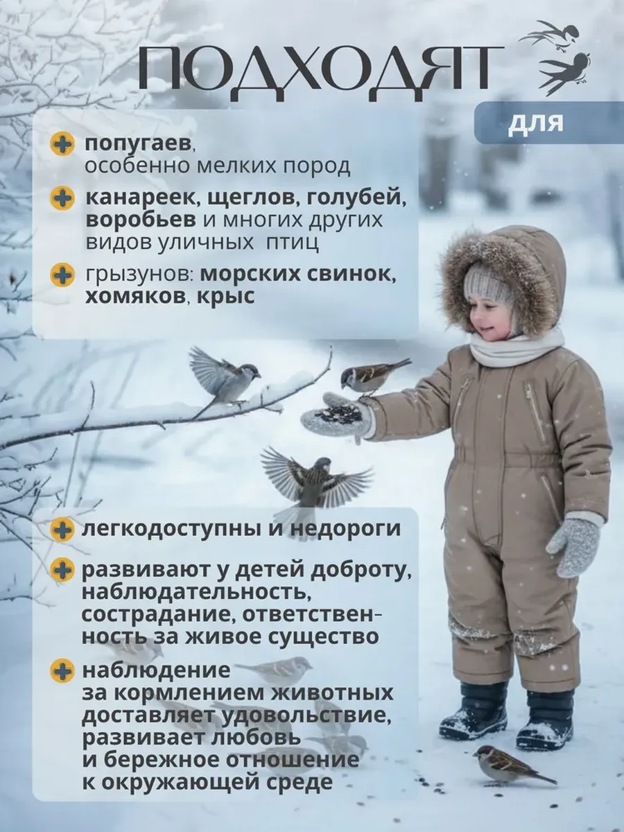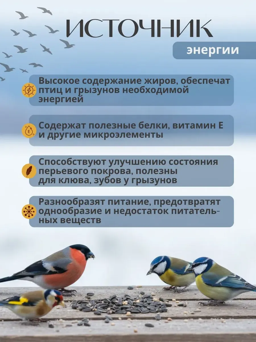 Калибр семян : мелкий( отлично подходит мелким птицам!)