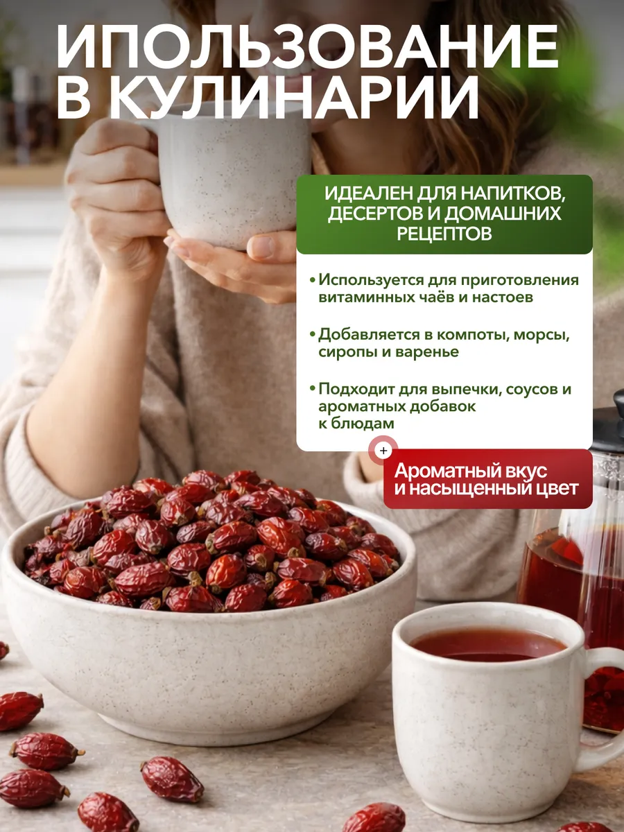 Наш сушеный шиповник упакован в герметичные пакеты, которые сохраняют свежесть и аромат продукта. Удобная упаковка позволяет легко хранить его на кухне.
